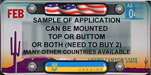 Car Emblem for license plates. Screw On 3D Car Emblem. No Adhesive - Monted by license plate mounting screws (not included). Applied over your existing license plate or over plafe frame. Size: 8" x 1.14" (Mounting holes centres 7") Black Styrene Plastic Bezel Emblem with UV and water resistant Domed insert. Brand New. Mount on existing holes over license plate. Use 2 top or 2 bottom holes to mount. Distance between holes - 7" Standard for north America automotive plates. To mount unscrew license plate frame then screw it back with emblem placed over plate, same way as you would mount your license plate frame.