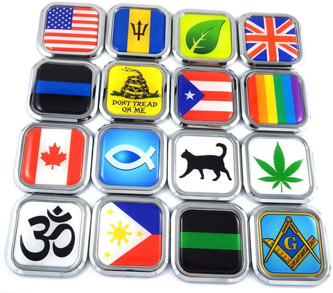 3D Car Emblem. Size: 2" square (exact measurements 1.93"). Chrome Plated Plastic Bezel True 3D Emblem with UV resistant Domed insert and adhesive backing. Original. Brand New. ----------- Use as single or combined with any of many designs available at our store to reflect your personality and pride. We Have many other designs, also with black rim and flexible without rim. Please Check our store. Missing required design for you - ask us for option to customize for additional set up fees. ------------ Bezel made of durable ABS plastic core with chrome electroplated shell, (OEM specs). Coloured insert UV stable domed decal. With Automotive grade foam adhesive (peel and stick) for easy install. Can be mounted on almost anywhere on your car. Bumper, front hood, rear hatch, side fender, window, interior. Mount on flat, dry clean surface. For better result apply at warm conditions. Pick a flat surface. Part will not bend but small curvature will be absorbed by foam adhesive. Brand new 3D emblem. Buy from manufacturer direct. Check our store for all USA states emblems available. Size: 2" (exact: 1.93"H x 1.93"W x 1/8"T) Will not fade, chip and will not be affected by extreme weather or car washes.