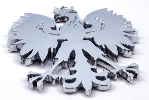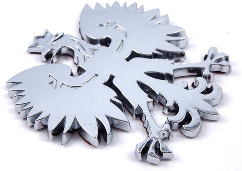 Polish, Polski Eagle. Emblem of Poland. Crown of eagle same chrome as an eagle (as shown on picture). Please check our other listings for similar with golden crown. Size: 2.5" x 2.5" (63mm x 63mm) Thickness about 0.12" (3mm) Chrome Plated Plastic Automotive 3D Emblem. Durable ABS plastic core with chrome plated shell, With Automotive grade foam adhesive (peel and stick) for easy install Can be mounted on almost anywhere on your car. Bumper, front hood, rear hatch, side fender, window, interior. Mount on flat, dry clean surface. For better result apply at warm conditions. The emblem is firm. Will not bend. Apply to flat surface. Brand new 3D emblem. Size: 2-1/4"H x 2-1/4"W x 1/8"T. Will not fade, chip and will not be affected by extreme weather or car washes.