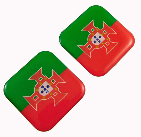 Portugal Flag Square Domed Decal car Bike Gel Stickers 1.5" 2pc