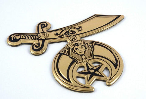 hriners. Shriner symbol. Soft PVC Gold finish decal. Size: 2.75" Apply to car, bike , Indoor or outdoor. Soft gold finish PVC flexible self adhesive decal Water proof and UV resistant. Use indoor or outdoor. War wash safe. Apply to Glass, metal, painted surface, smooth wood, plastic, Bumper, front hood, rear hatch, side fender, window, interior. Mount on flat, dry clean surface. For better result apply at warm conditions Size: 2.75" x 2.37" x 0.05" (70mm x 58mm x 1.5mm) Brand new. Soft flexible gold finish. Waterproof, UV resistant and easily applied to any smooth surface. Good for indoor or outdoor use. Our domed decals can be applied to: Vehicle Windows, Vehicle Body Surfaces, Laptop Cases, Motorcycles, Bicycles, Helmets, Toolboxes, Smooth Painted Surfaces, Store Windows, Plastic surfaces, or just about any surface that is smooth and clean. To Apply: Clean surface to be applied. Carefully remove decal with front mask from back liner. Apply decal to surface. apply slight hand pressure. Remove front clear mask. If needed clean with soft cloth and soapy water. Allow 3 days without car wash.